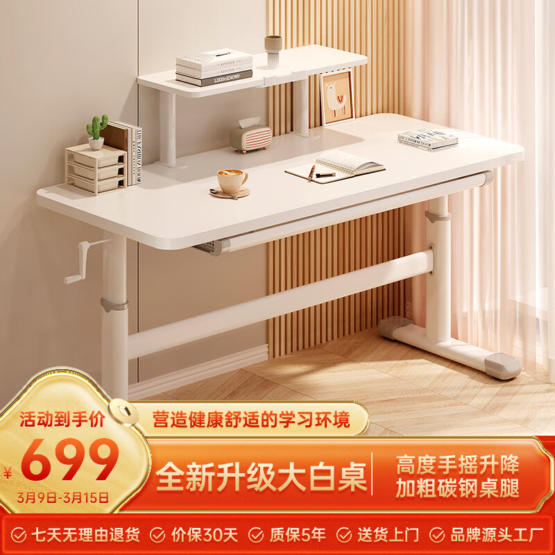 尊眠(ZUNMIAN)学习桌儿童书桌小学生可升降实木写字桌大白桌 1m抽屉书架 白色价格:849.00元!