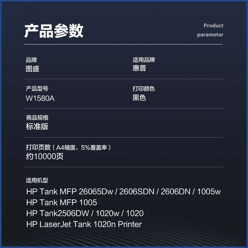 图盛158a粉盒适用惠普2606sdw粉盒 HP2606dw墨粉 1005w墨粉 2506dw 2606dn 2606sdn打印机硒鼓158x碳粉W1580A 价格:116.00元!