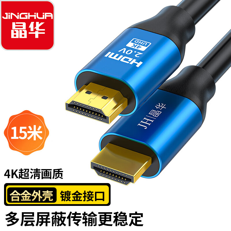 晶华(JH)HDMI高清线2.0版 4K数字3D视频线 电脑笔记本机顶盒连接电视显示器投影仪连接线 合金 15米 H610M价格:109.90元!