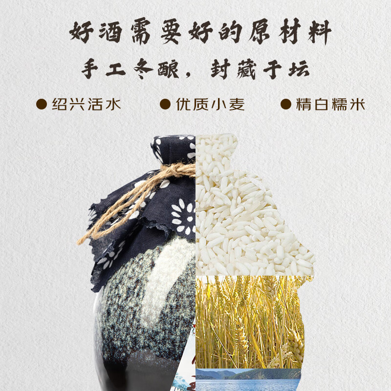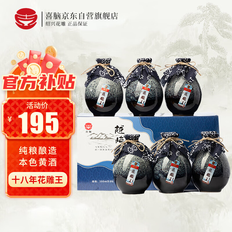 喜脑 绍兴黄酒十八年陈酿花雕酒0添加无焦糖色坛装糯米酒整箱装送礼价格:195.00元!