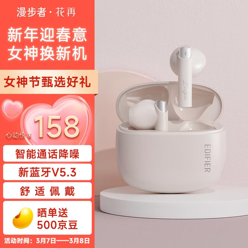漫步者花再 ZeroBuds 真无线蓝牙耳机 音乐耳机 半入耳式耳机 适用苹果安卓 节日礼物生日礼物 雅粉价格:158.00元!