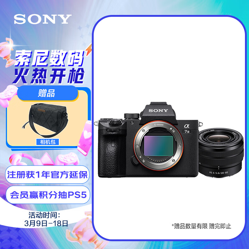 索尼(SONY)Alpha 7 III 28-60mm全画幅微单数码相机 便携镜头套装(约2420万有效像素 a7M3/A73/a7m3)价格:12799.00元!