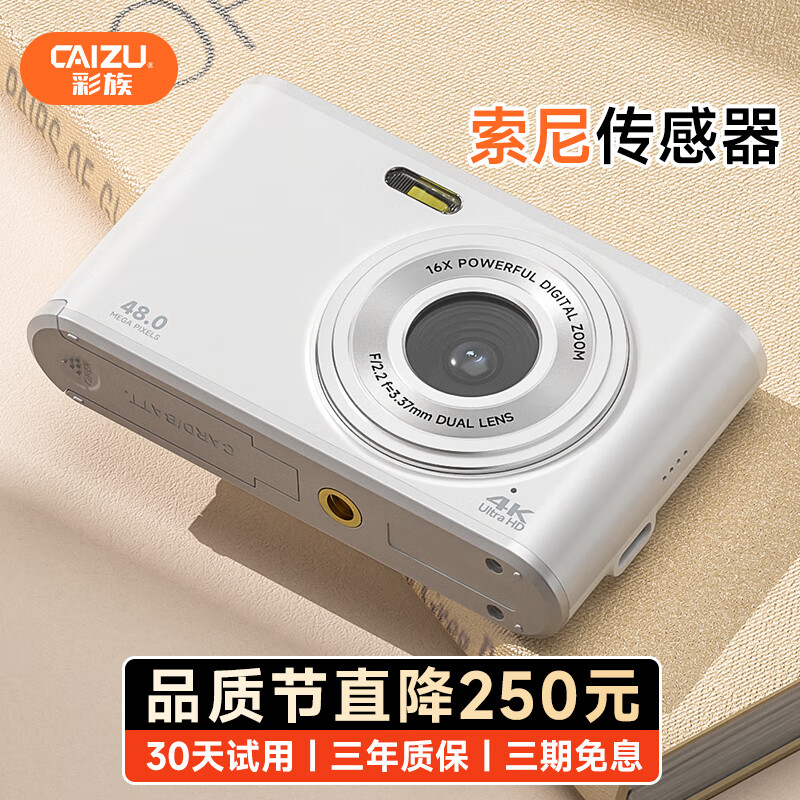 彩族(CAIZU) 前后双摄9600W高清像素ccd小卡片机自拍vlog学生数码相机校园入门便携随身带可传手机照相机128G价格:849.00元!