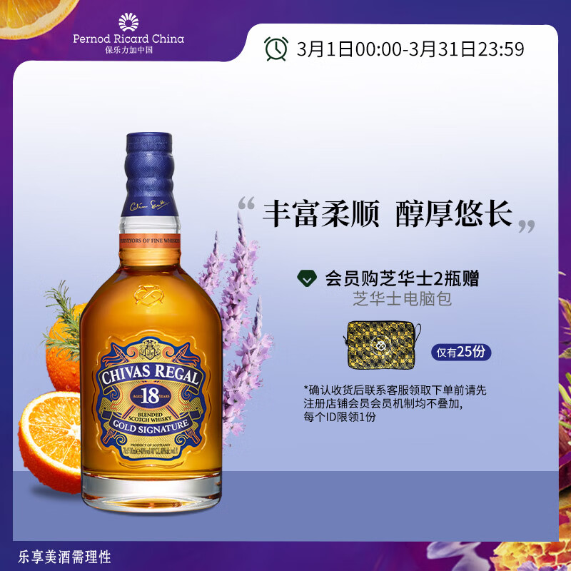 芝华士(Chivas)18年 苏格兰 调和型 威士忌 洋酒 500ml价格:349.00元!