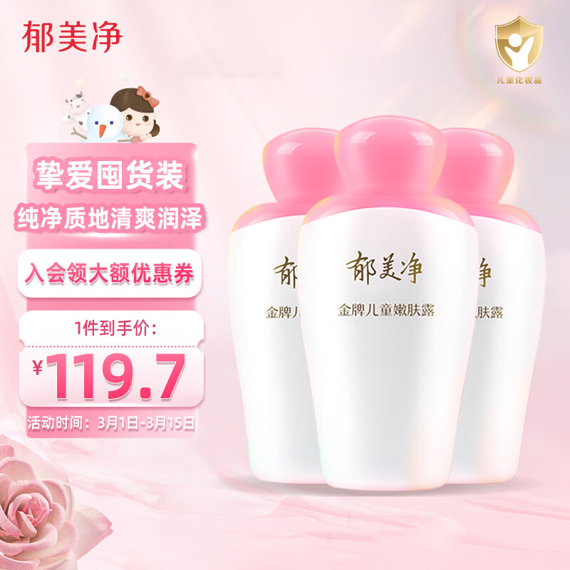 郁美净儿童宝宝润肤乳补水保湿擦脸四季保湿霜金牌儿童嫩肤露100g*3瓶价格:119.70元!