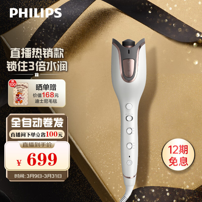 飞利浦(PHILIPS)全自动电卷发棒 升级款 SenseIQ技术 防烫造型 25mm? BHB878/15 陶瓷白价格:799.00元!