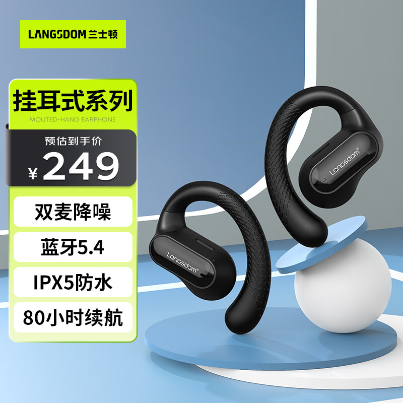 兰士顿蓝牙耳机挂耳式 骨传导概念开放不入耳 双麦降噪运动跑步骑行 适用于苹果小米华为手机 TS05黑色价格:299.00元!