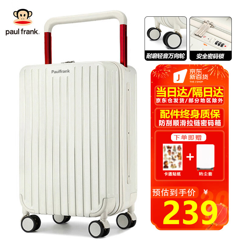 大嘴猴(PAUL FRANK)行李箱平衡宽拉杆箱女大容量26吋上学旅行箱男轻音万向轮出差皮箱价格:239.00元!