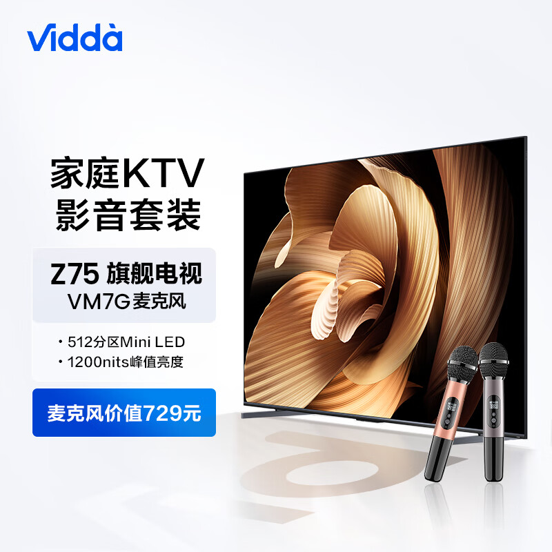 Vidda Z75 海信 75英寸 512分区Mini LED 144Hz电视机+VM7G-T麦克风套装 K歌电视 家庭KTV 无线降噪话筒价格:6709.00元!