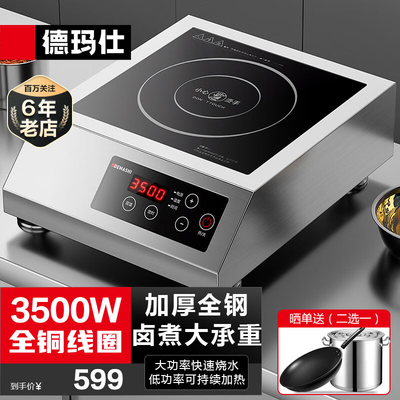 德玛仕(DEMASHI)商用电磁炉大功率 3500W大功率电磁炉商业火锅电池炉 平面商用电磁灶不锈钢 IH-TT-3500A价格:599.00元!
