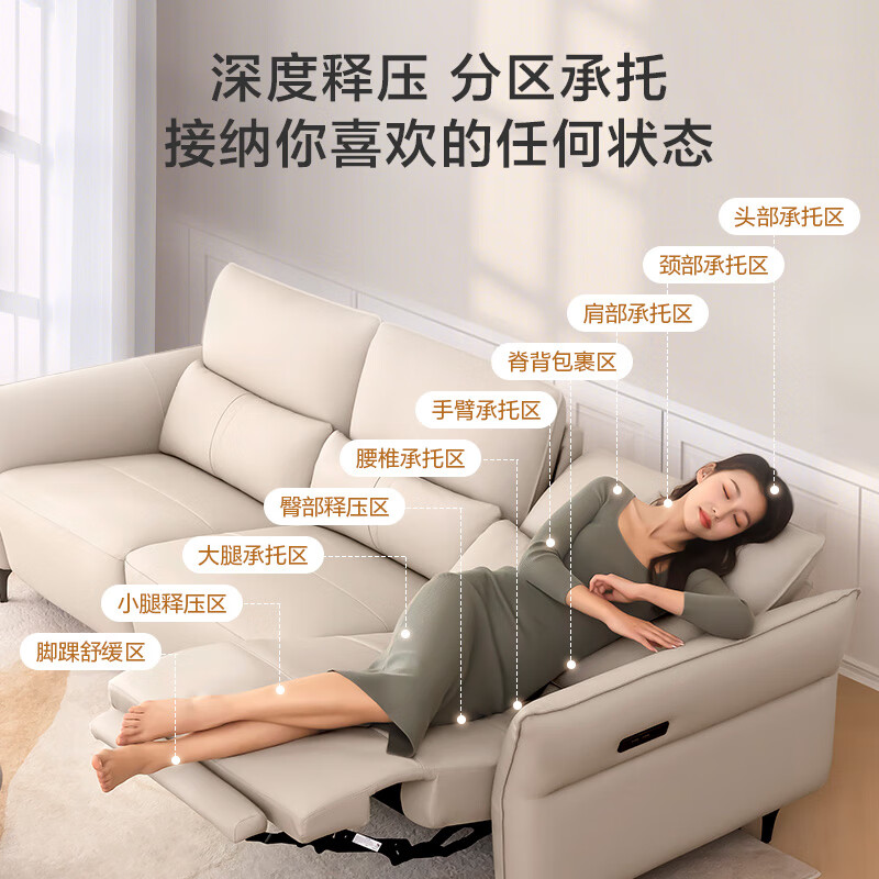 京东京造真皮沙发 靠背秒变茶几|头层牛皮|现代轻奢双电动 米色四人位SE12价格:6499.00元!