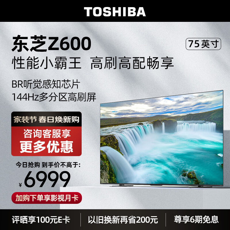 东芝电视75Z600MF 75英寸4K144Hz高分区 BR听觉芯片 巨幕液晶智能火箭炮游戏电视机 品牌电视前十名价格:6999.00元!
