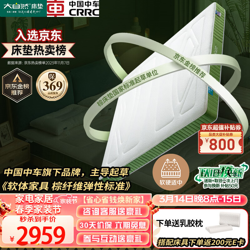 大自然山棕床垫椰棕床垫 可定制榻榻米偏硬棕垫 森梦 1.8米*2米*7厘米价格:3509.00元!