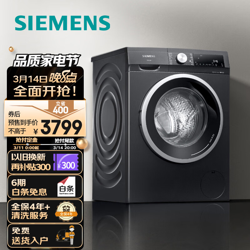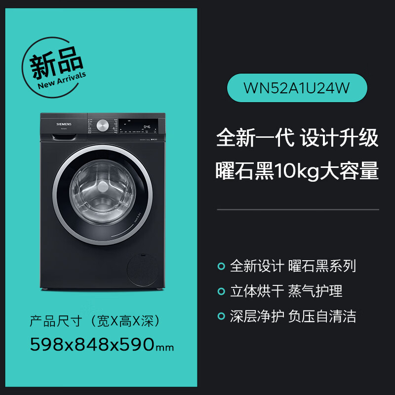 西门子(SIEMENS)iQ300曜石黑系列 10公斤滚筒全自动洗衣机烘干机一体机 专业除菌护衣 智能羽绒服洗烘 U24W价格:4499.00元!