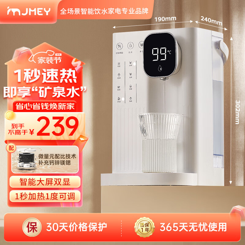 集米(jmey)T2 即热式饮水机台式即热饮水机家用小型桌面饮水机速热电热水壶烧水壶直饮机 新升级【矿物质滤芯款】 即热型价格:259.00元!