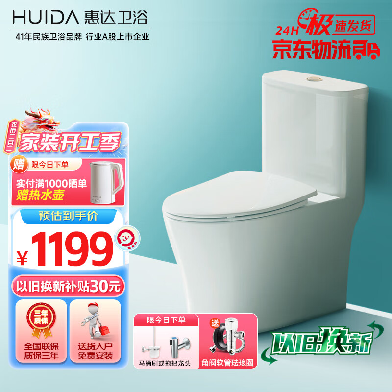惠达(HUIDA)抽水马桶家用大冲力节水虹吸式卫生间坐便器HDC6360B 400坑距价格:1699.00元!