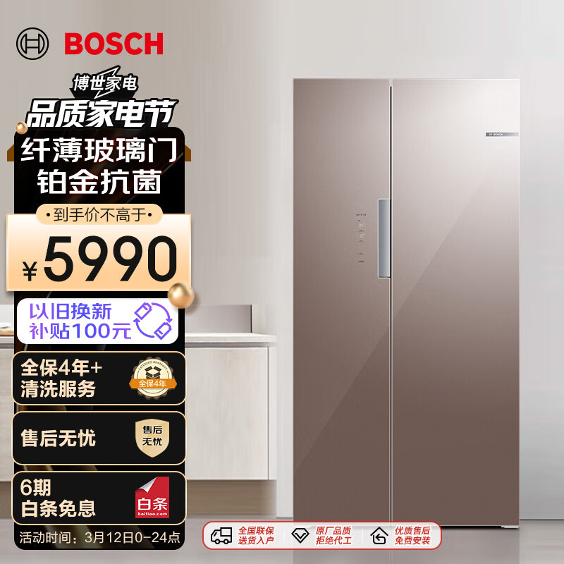 博世 BOSCH 【超薄玻璃门】502升风冷无霜变频嵌入式双开对开门冰箱 家用超薄 以旧换新 KAS50E62TI价格:7999.00元!