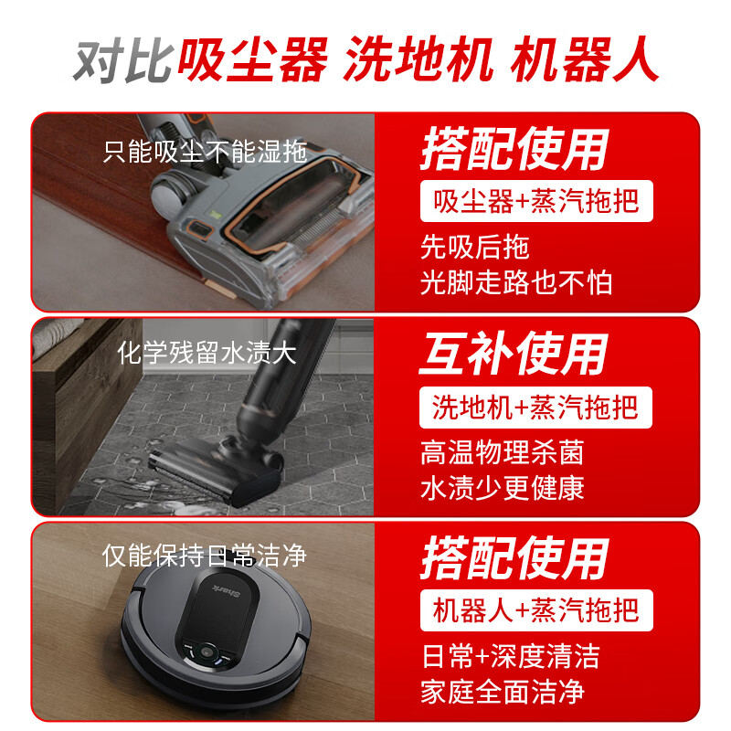 shark鲨客 蒸汽拖把 家用厨房清洁擦地拖地清洁机 高温蒸汽除菌 电动手持洗地机吸尘器伴侣P4价格:399.00元!