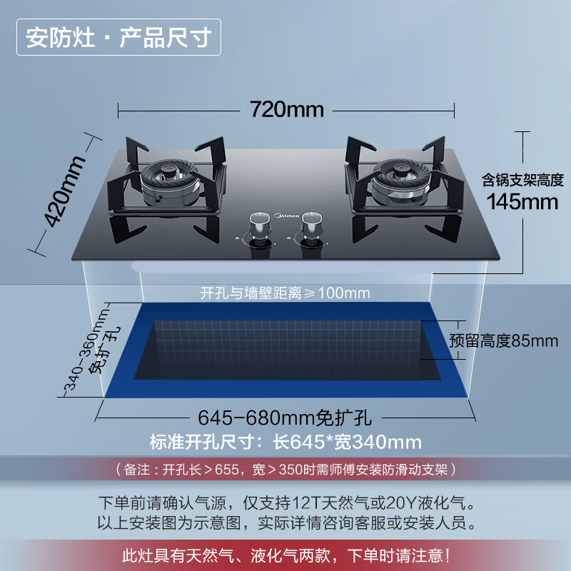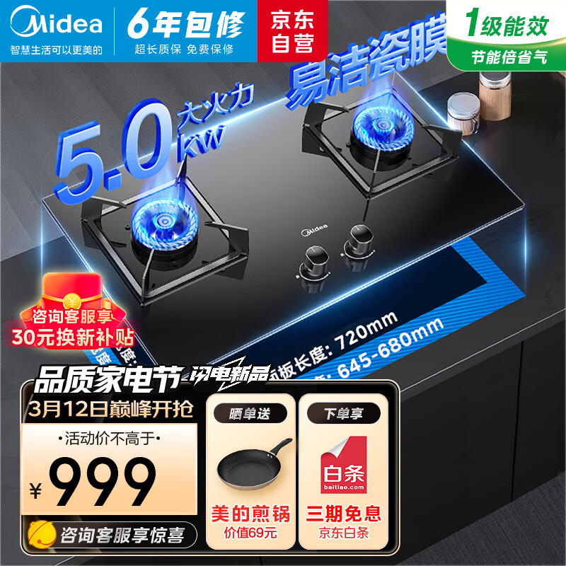 美的(Midea)燃气灶双灶家用5.0KW大火力黑晶宽面板台嵌两用双灶液化气灶Q330价格:999.00元!