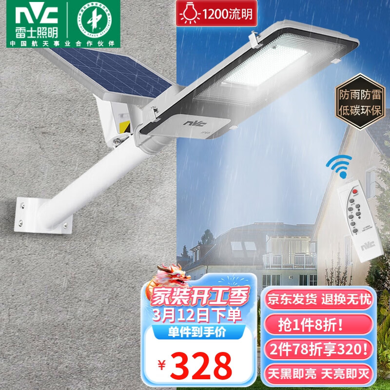 雷士(NVC)太阳能庭院灯路灯户外灯道路照明灯led投光灯球场围墙庭院灯价格:409.00元!