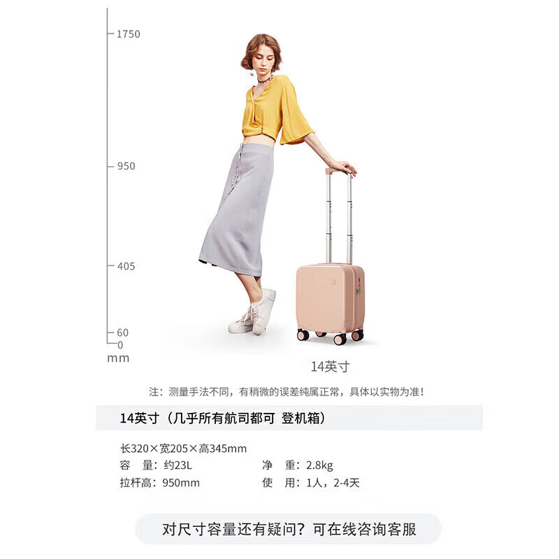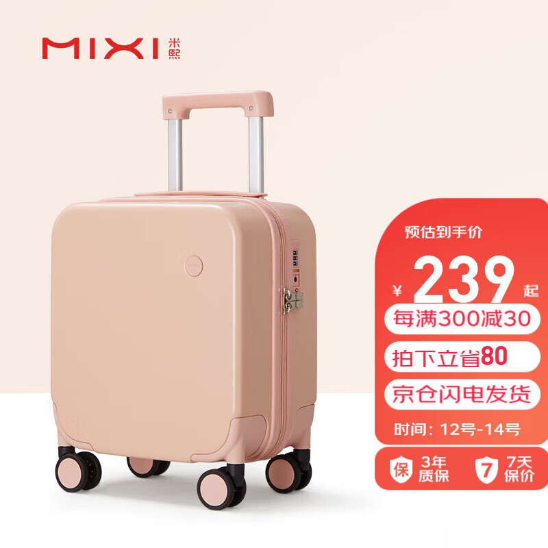 米熙mixi拉杆箱子行李箱小型登机箱14英寸飞机旅行箱包密码箱女粉色36价格:319.00元!
