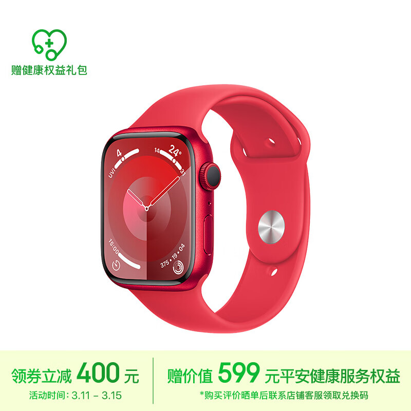 Apple/苹果 Watch Series 9 智能手表GPS款45毫米红色铝金属表壳 红色运动型表带M/L MRXK3CH/A价格:3199.00元!