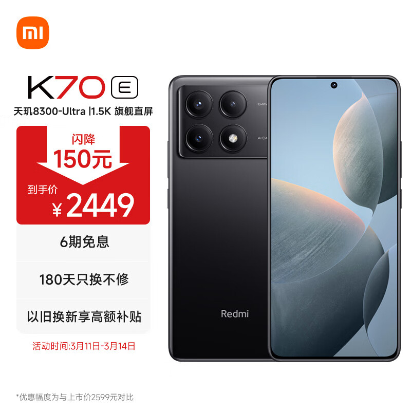 小米(MI)Redmi K70E 天玑 8300-Ultra 小米澎湃OS 1.5K 旗舰直屏 16GB+1T 墨羽 小米红米K70E价格:2499.00元!
