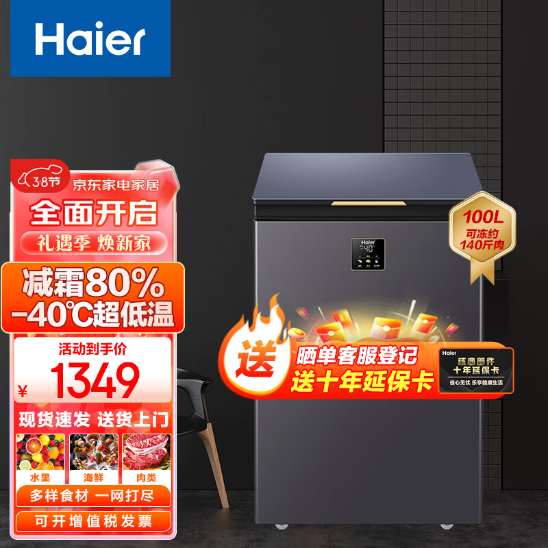 海尔(Haier)冰柜100升家用商用冷柜迷你小冷柜小型冷冻柜一级能效节能速冻小冰箱 BC/BD-100GHEPG[家电]价格:1449.00元!