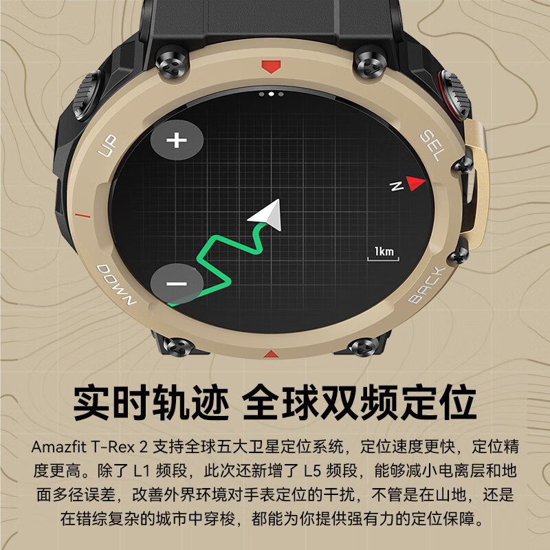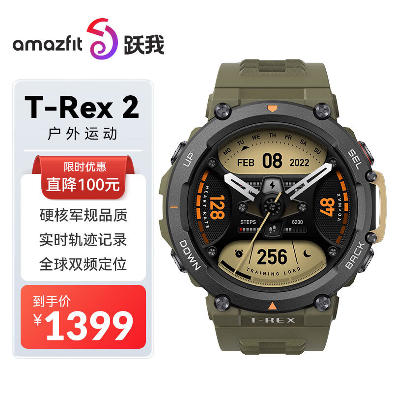 AMAZFIT华米跃我 T-Rex 2 丛林绿 智能手表 15项军规认证 100米防水 五星双频 watch户外运动男士礼物价格:1399.00元!