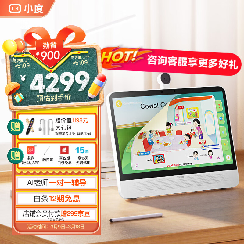 小度大屏学习机P20Plus(6+256G)15.6英寸小学到高中学生平板电脑 百度文心大模型 AI精准学 多娃系统价格:4299.00元!