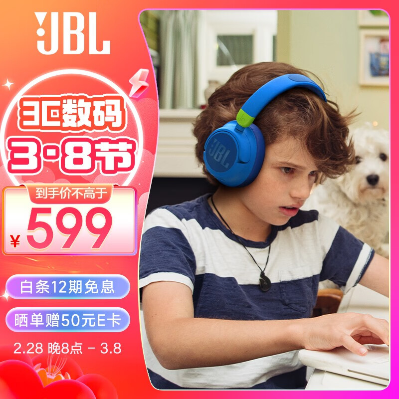 JBLJR460NC 头戴式降噪蓝牙耳机 益智沉浸式无线大耳包玩具英语网课听音乐学习学生儿童耳机 湖水蓝价格:699.00元!