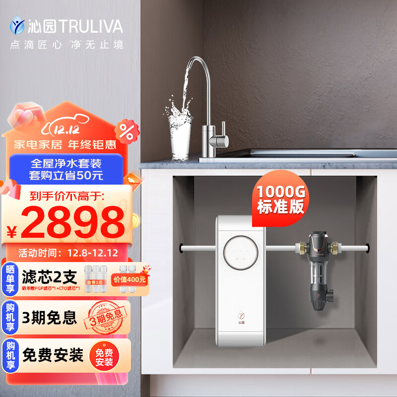 沁园(TRULIVA)小白鲸Pro1000G标准版 二件套装 净水器UR-S51045+前置过滤器P-A5510(黑)价格:2898.00元!