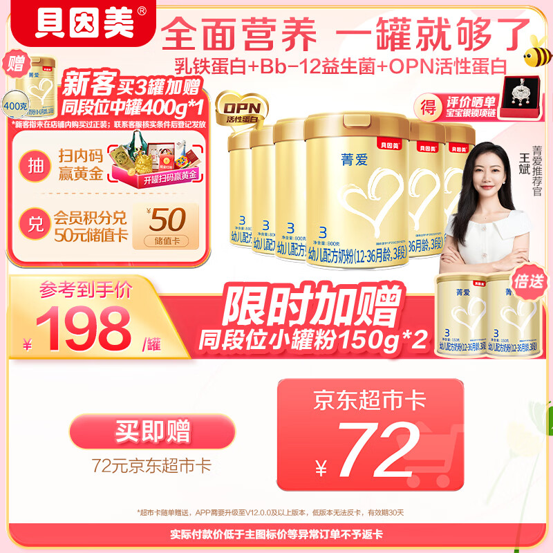 贝因美菁爱3段幼儿配方奶粉800g*6多罐骨骼发育消化吸收含益生菌+DHA价格:1350.00元!