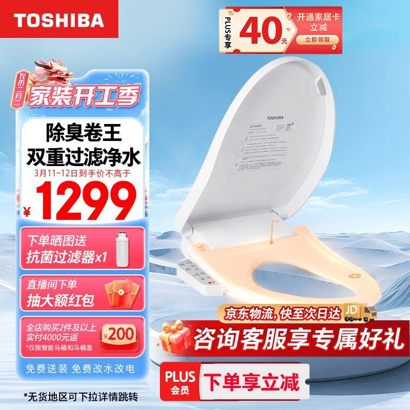 东芝(TOSHIBA)智能马桶盖电动自动加热暖风烘干抗菌马桶圈除臭卷王 清沐T3-86F6价格:1599.00元!