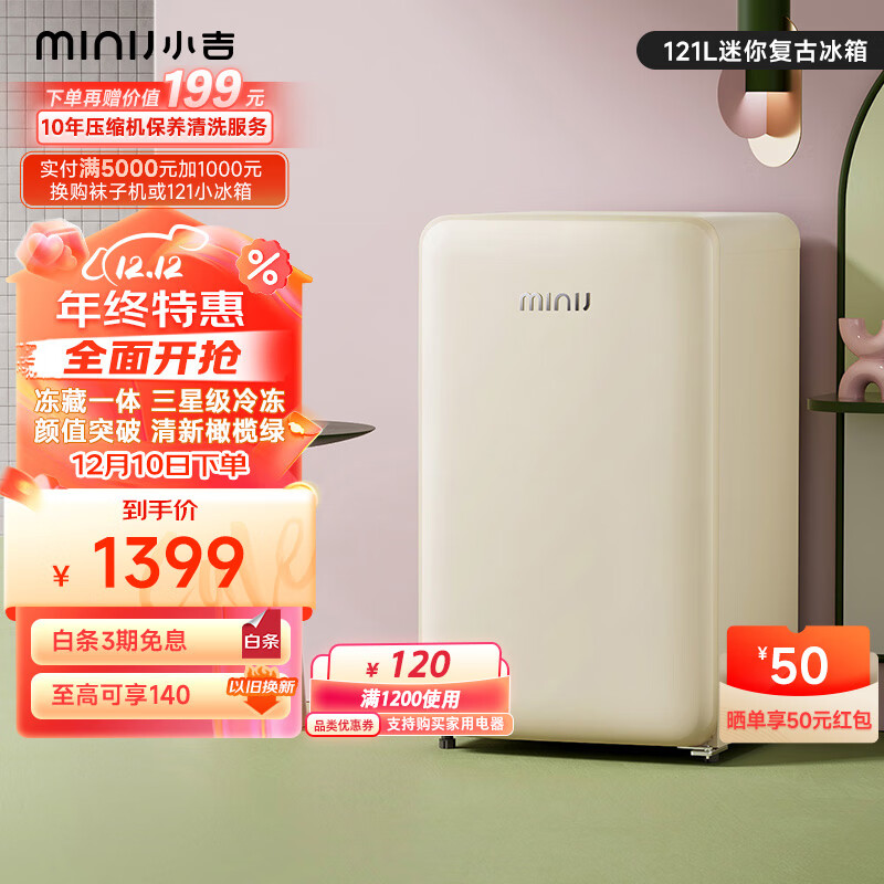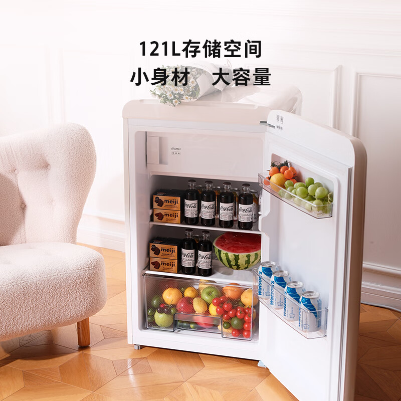 小吉(MINIJ)121升单门冰箱小冰箱 租房小型家用冰箱BC-121CM迷你复古冷藏冷冻一体价格:1399.00元!