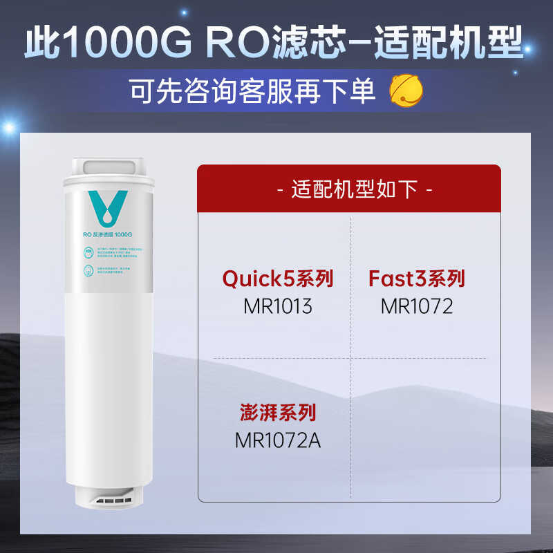 云米(VIOMI) 升级款云米净水器滤芯适配机型S2、Fast3、X2、Quick5、MeePlus、澎湃/Fast 1000G 2号RO膜(1000G)价格:888.00元!