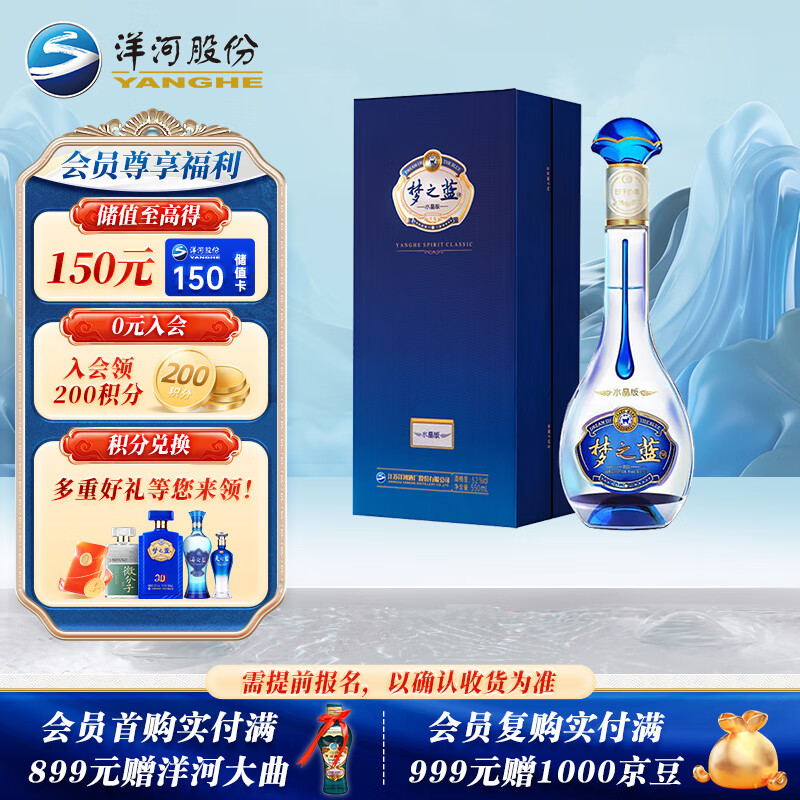洋河 梦之蓝水晶版 52度 550ml 单瓶装 绵柔浓香型白酒价格:698.00元!