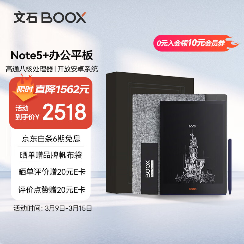 BOOX文石 Note5+ 礼盒款 智能办公本 10.3英寸电子书阅读器 墨水屏电纸书电子纸 看书电子笔记本6+128G价格:2518.00元!