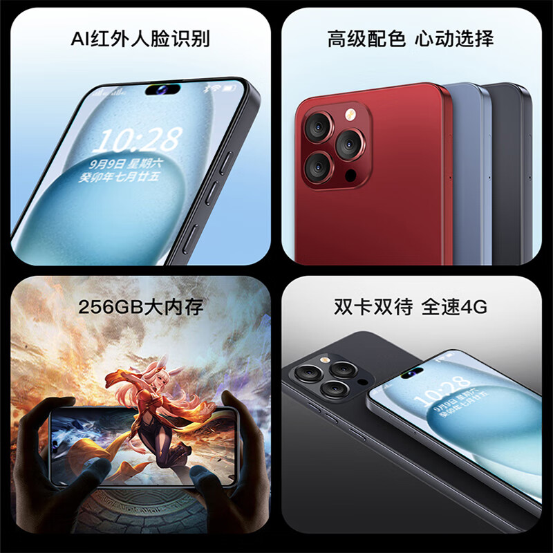 朵唯(DOOV)X15 pro大屏超薄智能手机灵动岛互娱4g通长续航大电池学生机安卓超薄便宜256G黑色价格:569.00元!