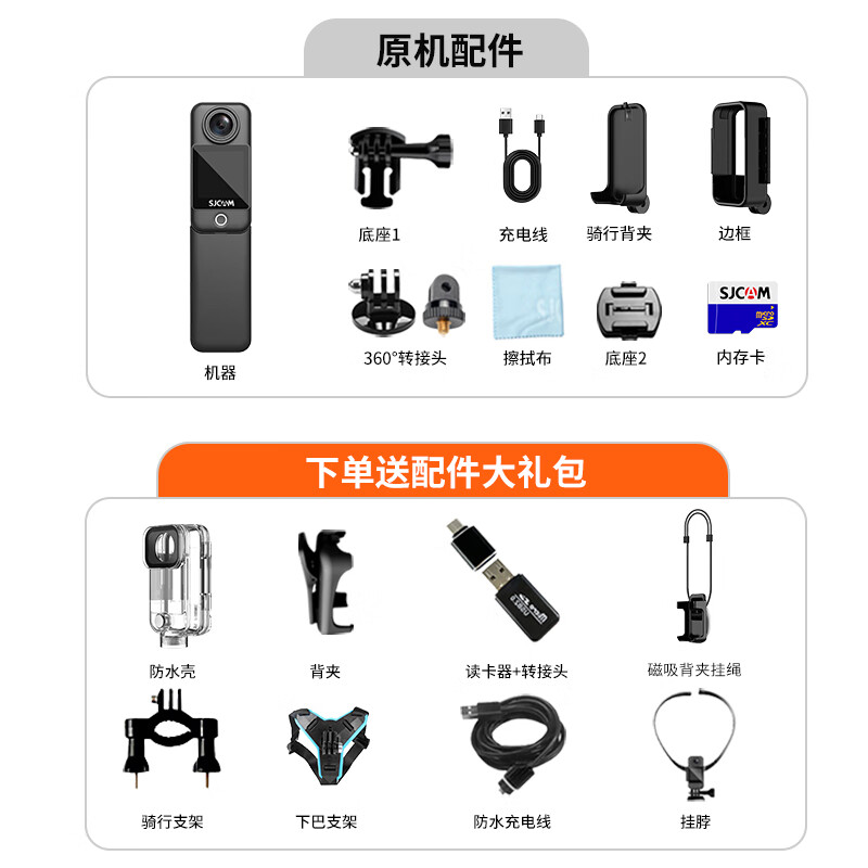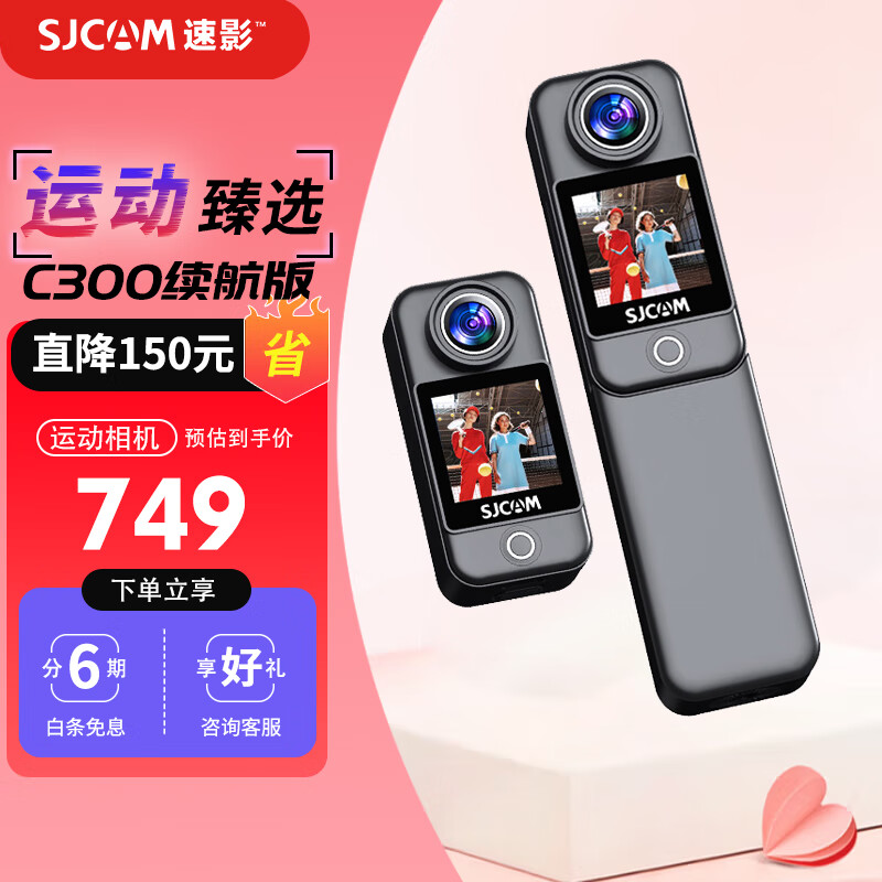 SJCAM速影 C300续航版360运动相机摩托车行车记录仪拇指相机防抖防水黑色16G+配件包价格:849.00元!