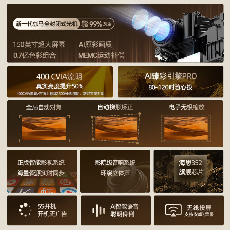 1、双十一买的很划算哦,隔天就到了,速度很快。画质也很清晰,音质还可以,卧室里用完全够了,可以根据投影距离变焦倍数,体验感不错