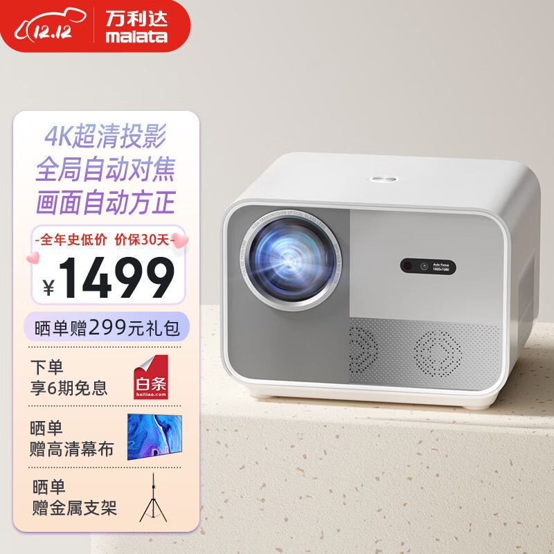 万利达(malata)M7 4K超清投影仪家用音乐投影机家庭影院投影(全局自动对焦 全封密式光机 全向梯形矫正)价格:1999.00元!