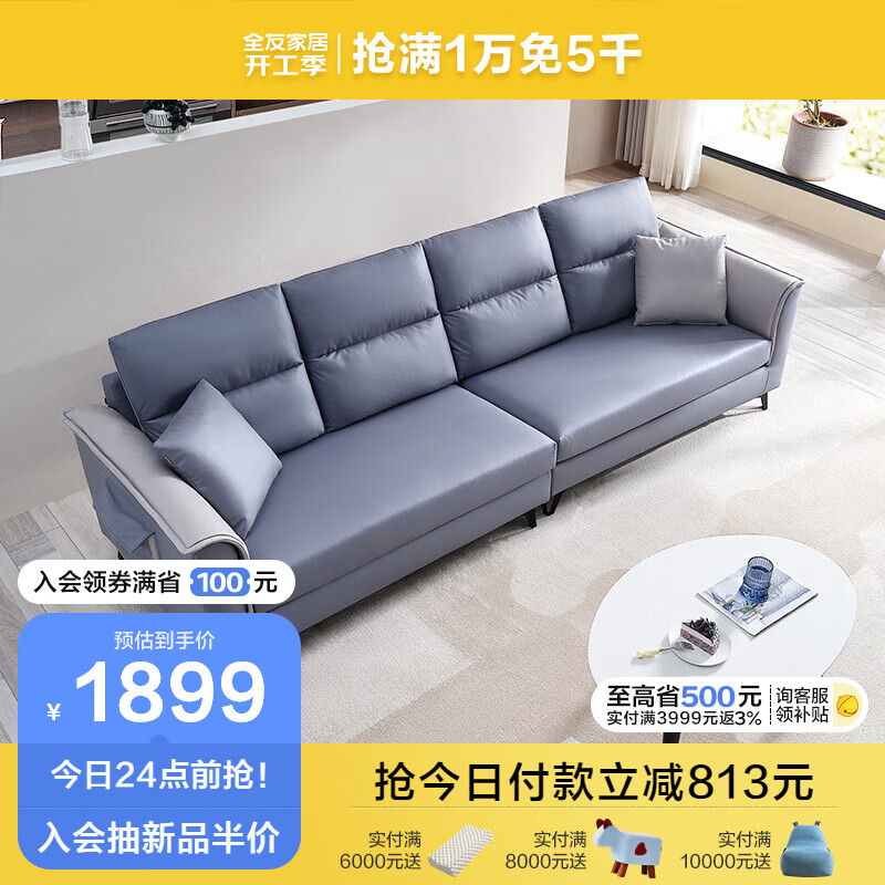 全友家居北欧休闲沙发简约科技布沙发四人位沙发直排客厅小户型102567价格:2712.86元!