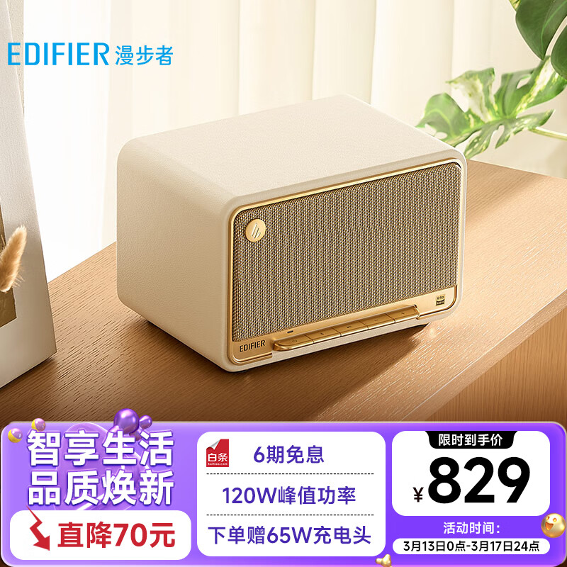 漫步者(EDIFIER)M330 高品质复古蓝牙音箱 一体式大功率音响 家庭无线音响 桌面音响 户外音响 贝母白价格:869.00元!