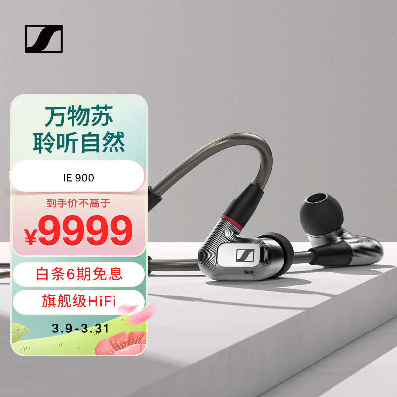 森海塞尔(Sennheiser)IE900 全新旗舰级HiFi高保真音乐耳机可拆卸MMCX耳机线有线 入耳式耳机 银色价格:9999.00元!