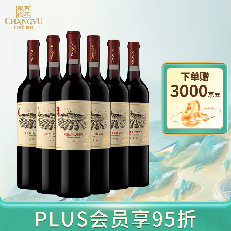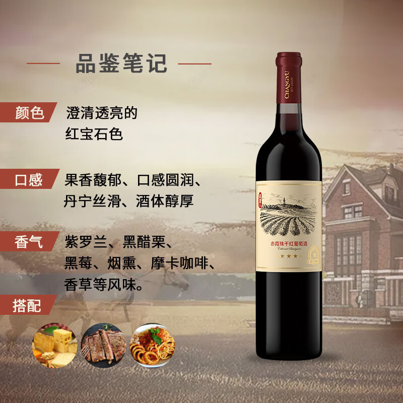 张裕 三星 星盾赤霞珠干红葡萄酒 750ml*6瓶 整箱装价格:398.00元!