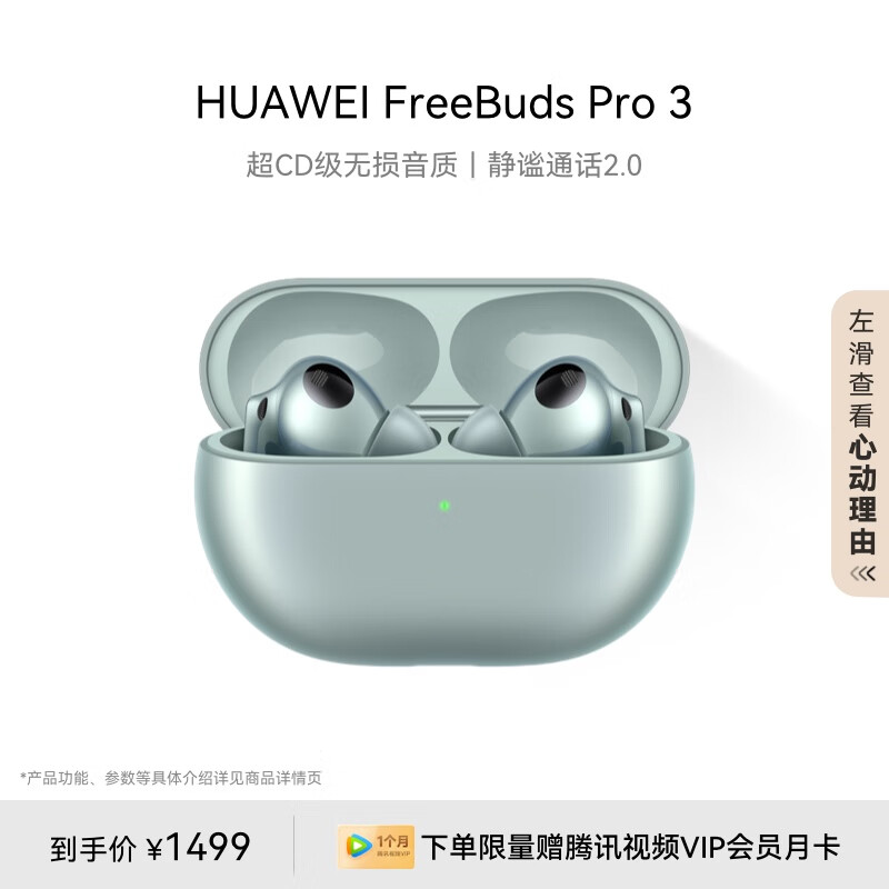 华为(HUAWEI)FreeBuds Pro 3 真无线蓝牙降噪耳机 入耳式动态降噪/游戏影音/离线查找/适用Mate 60 雅川青价格:1399.00元!