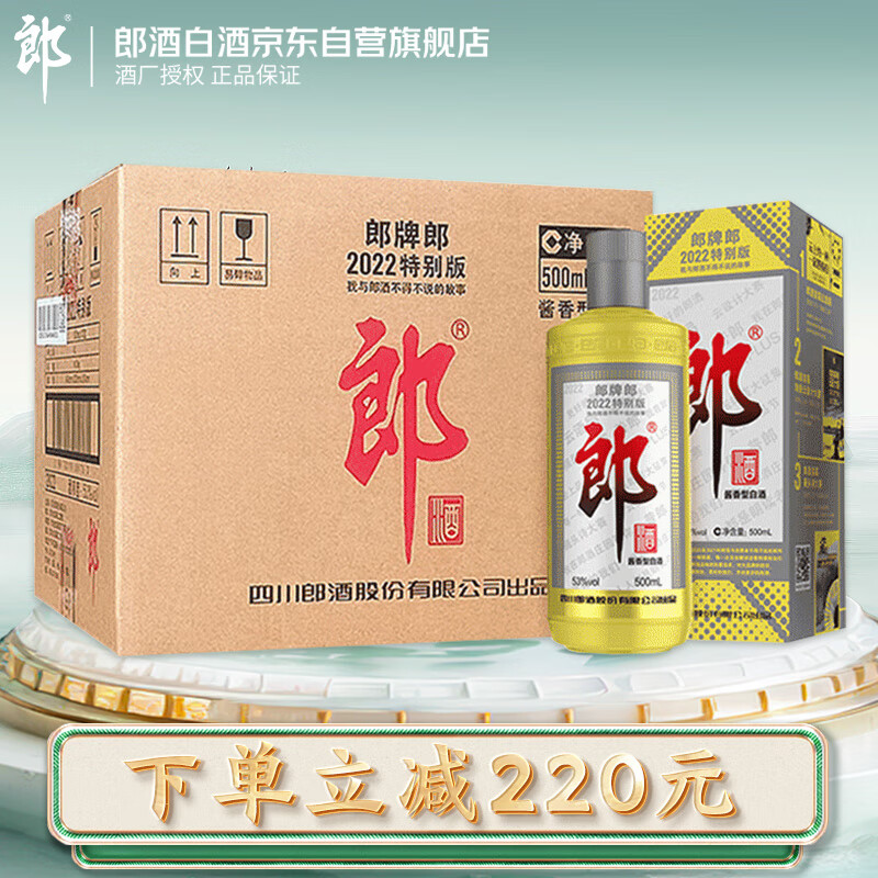 郎酒 郎牌郎酒2022年纪念酒酱香型白酒53度500ml*12瓶整箱装 年货礼品价格:2520.00元!