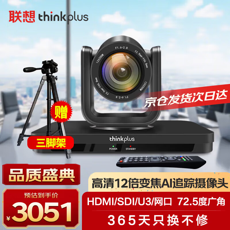 ThinkPlus联想视频会议摄像头大广角1080P高清12倍变焦AI追踪HDMI/SDI/USB网口直播录播摄像机SX-HD15A-12价格:3280.00元!