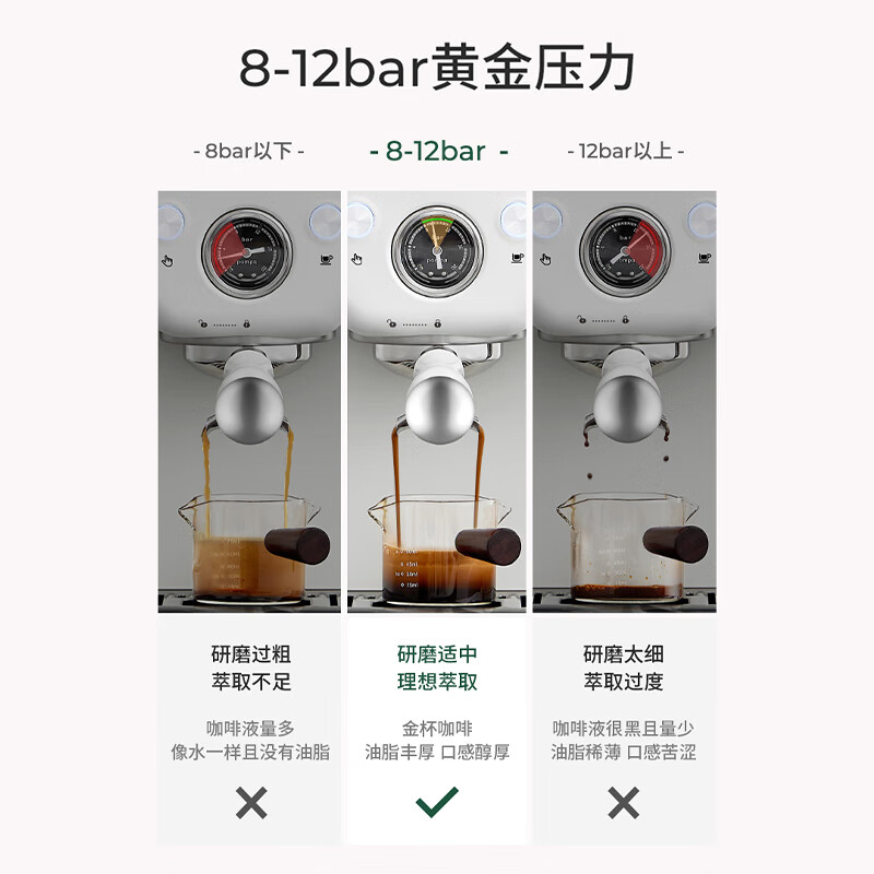 柏翠(petrus)咖啡机意式浓缩家用小型半自动蒸汽打奶泡 PE3833 海盐小方2.0价格:1899.00元!